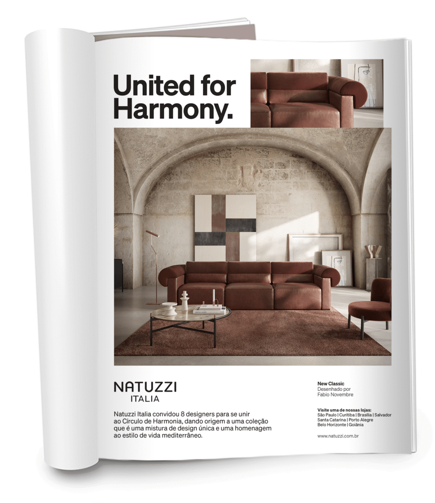 Revista Casa Vogue, edição de setembro. Anúncio sobre United For Harmony, focado no modelo New Classic desenvolvido por Fabio Novembre.