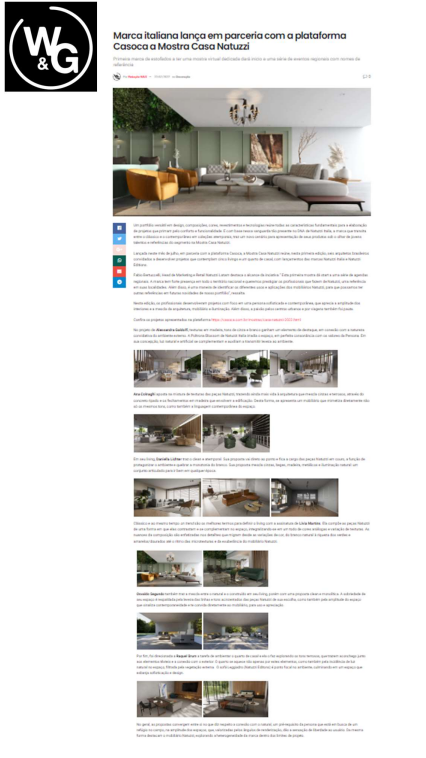 Marca italiana lança em parceria com a plataforma Casoca a Mostra Casa Natuzzi – Site W&G