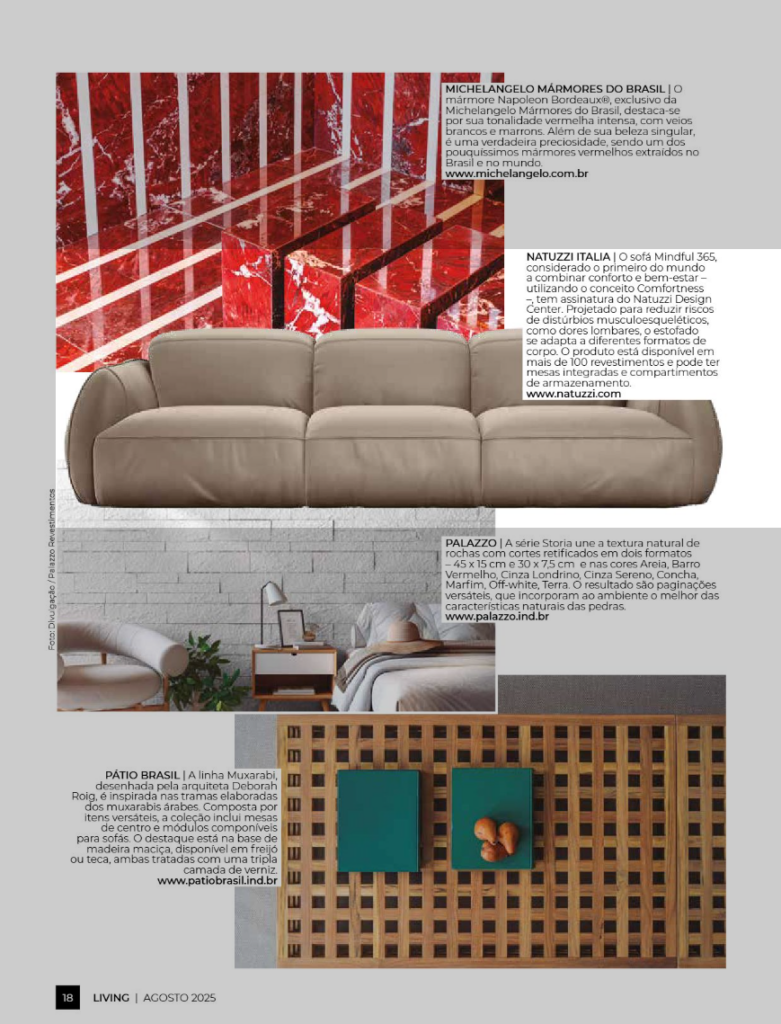 O Sofá Mindful 365, considerado o primeiro do mundo a combinar conforto e bem-estar – utilizando o conceito comfortness – tem assinatura Natuzzi Italia.