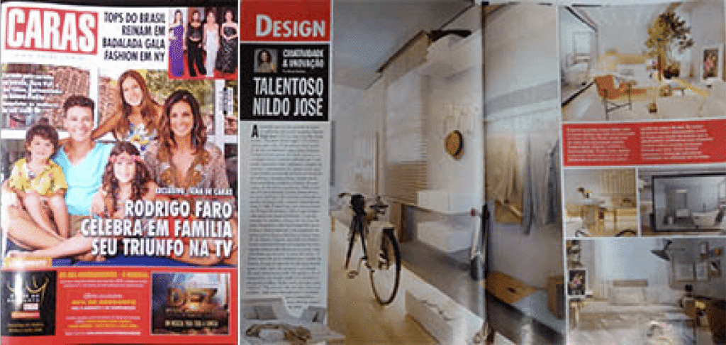 A revista Caras publicou uma reportagem falando sobre o ambiente da Casa Cor, do arquiteto Nildo José, o Estúdio Jabuticaba. Uma das fotos da matéria mostra o sofá Natuzzi Editions Mattia, sendo um dos produtos que o arquiteto utilizou.